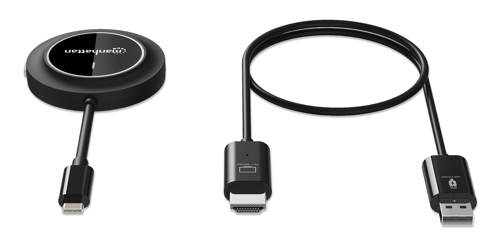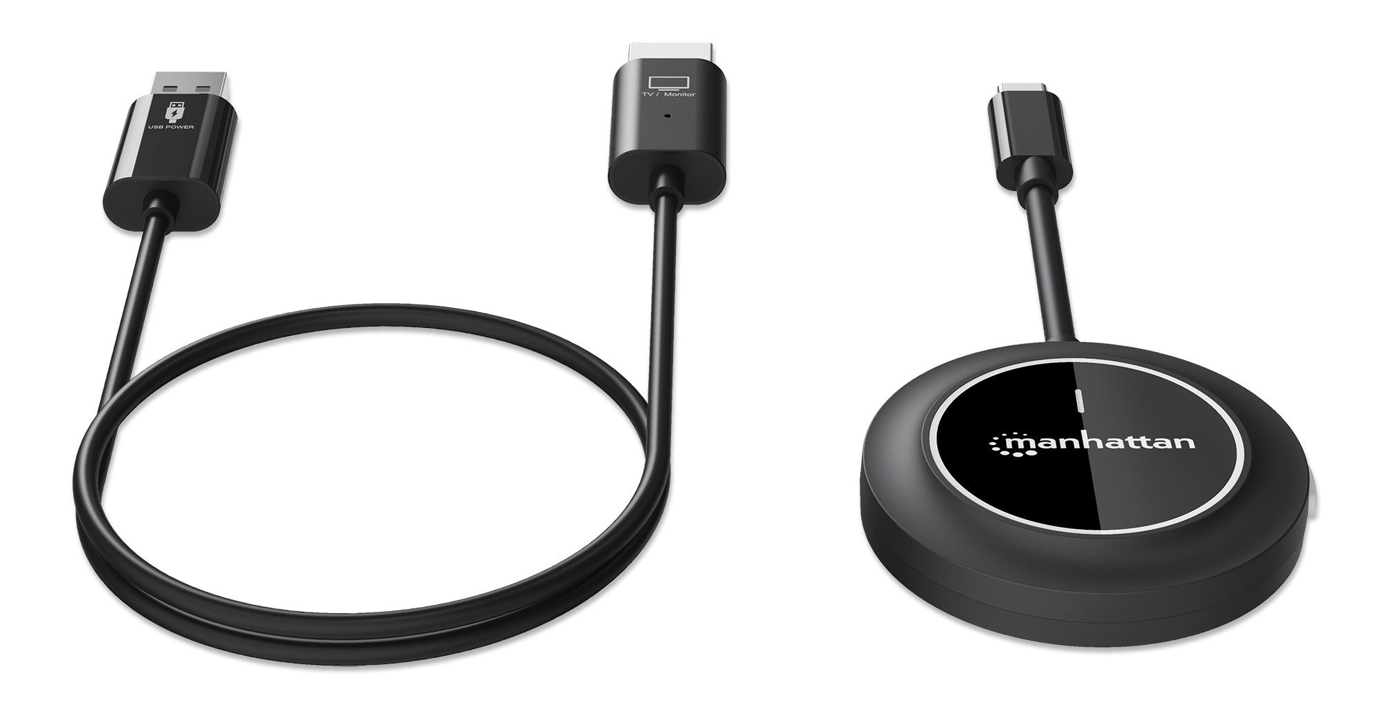 Das 1080p Wireless HDMI-Display-Präsentationsset mit USB-C-Sendemodul ermöglicht die kabellose Übertragung von Bild und Ton von USB-C-Geräten auf HDMI-Bildschirme, Monitore oder Beamer.