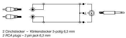 · Anschlüsse: 6,3mm Klinken-Stecker - 2x Cinch-Kupplungen