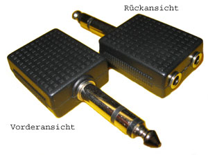 Klinkenadapter, 6,3mm Stereo-Stecker auf 2 x 3,5mm Klinkenbuchse Stereo