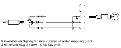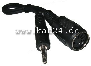 Klinkenstecker 3,5mm stereo auf 5-pol Diodenkupplung, Kabellänge 0,2m.