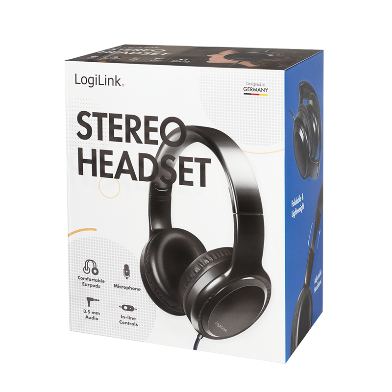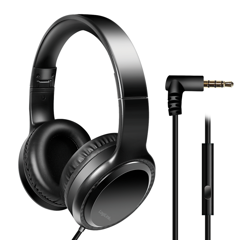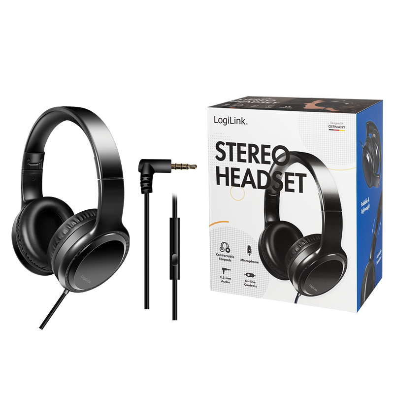 Stereo-Headset mit Mikrofon, 3,5-mm-Klinkenstecker, schwarz