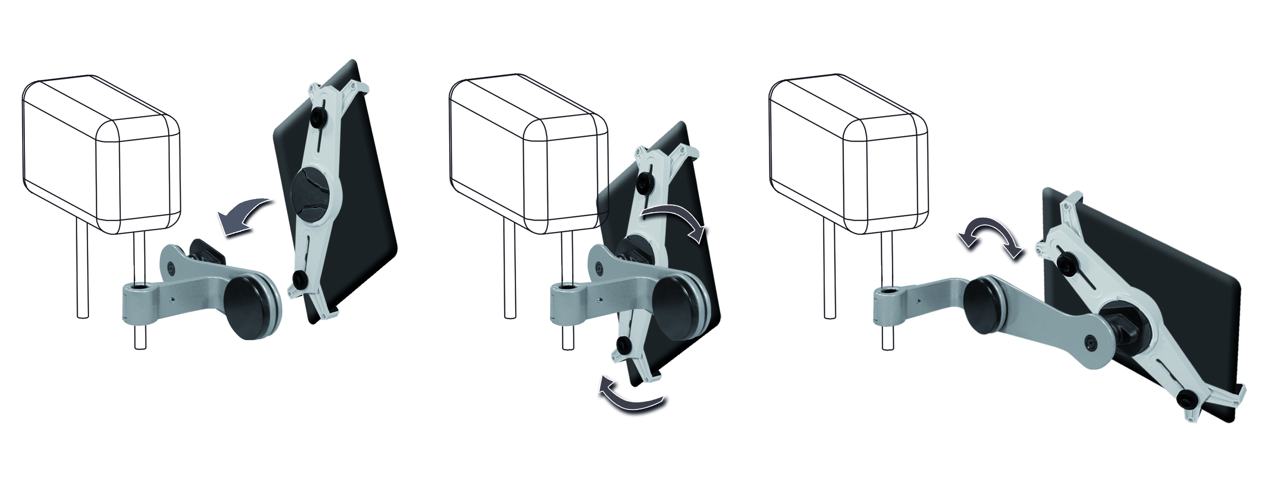 Auch an das Thema Sicherheit wurde gedacht: Die stabilen Trägerarme halten die Vorrichtung in der gewünschten Position. Weiche Gummipads verhindern, dass das Gerät zerkratzt wird und halten es in der gewählten Stellung fest.