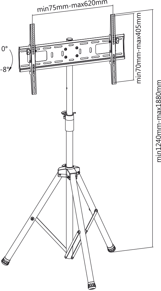 Passend für Bildschirme 37" bis 70" (94 - 178 cm), belastbar bis 35 kg. Der Bildschirm kann 8° nach unten geneigt werden.