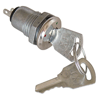 Schlüsselschaler Miniatur, ideal zur Sicherung von Kleingeräten wie Computern oder Videorecordern usw. Einbaudurchmesser 10 mm, Tiefe 30 mm, Kontakt 1 A/30 V~, 1x Ein, komplett mit 2 Schlüsseln, welche in jeder Stellung abgezogen werden können.