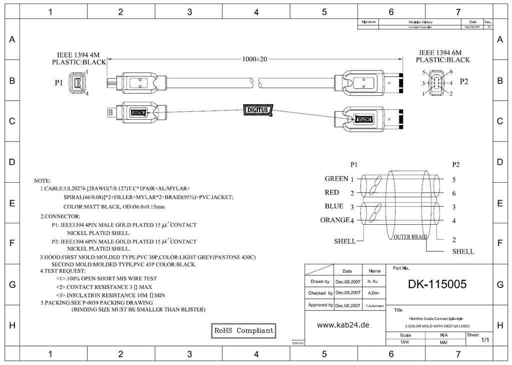 1394A 4pin Stecker <=> 1394A 6pin Stecker