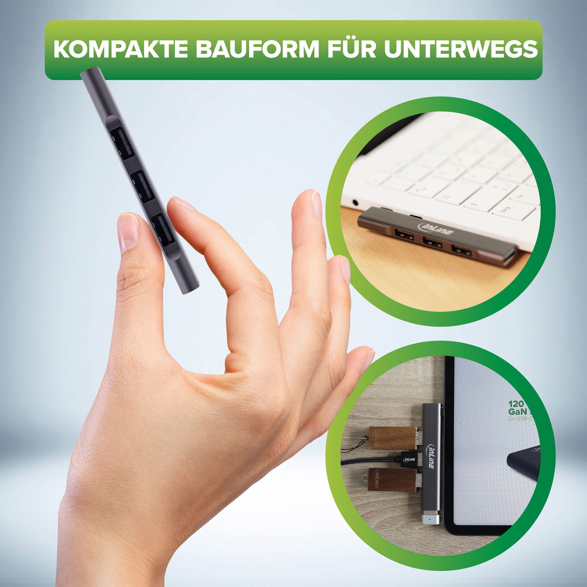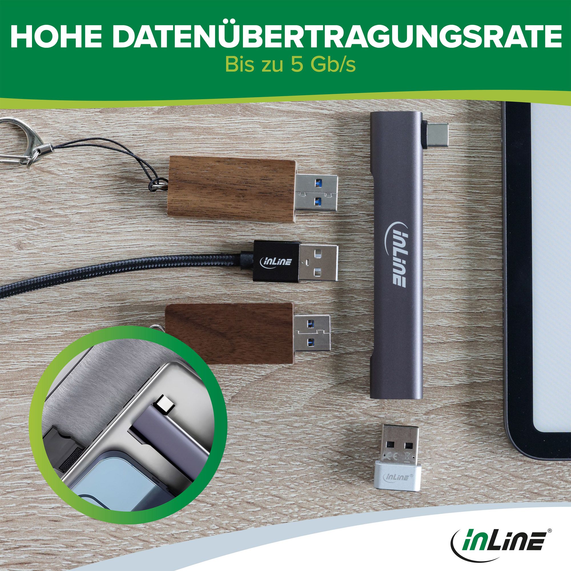 Der InLine® Slim USB-C Hub erweitert moderne USB-C Notebooks um vier USB-A Anschlüsse.