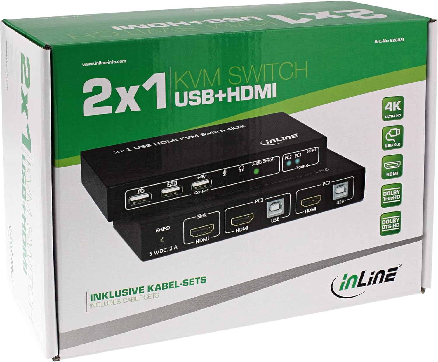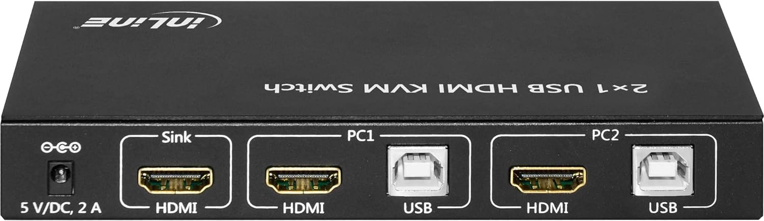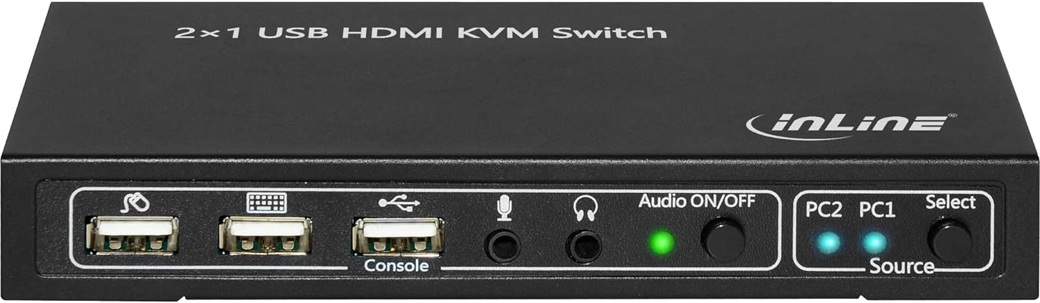 Der InLine® 2x1 USB HDMI KVM Switch ermöglicht das Anschließen zweier Computer mittels USB- und HDMI- Schnittstelle an ein Ausgabegerät wie HD-Fernseher oder HD-Monitor. Zusätzlich können weitere Peripheriegeräte wie USB Tastatur und Maus, sowie Audioausgabegerät und Mikrofon angeschlossen und einer Quelle zugewiesen werden.