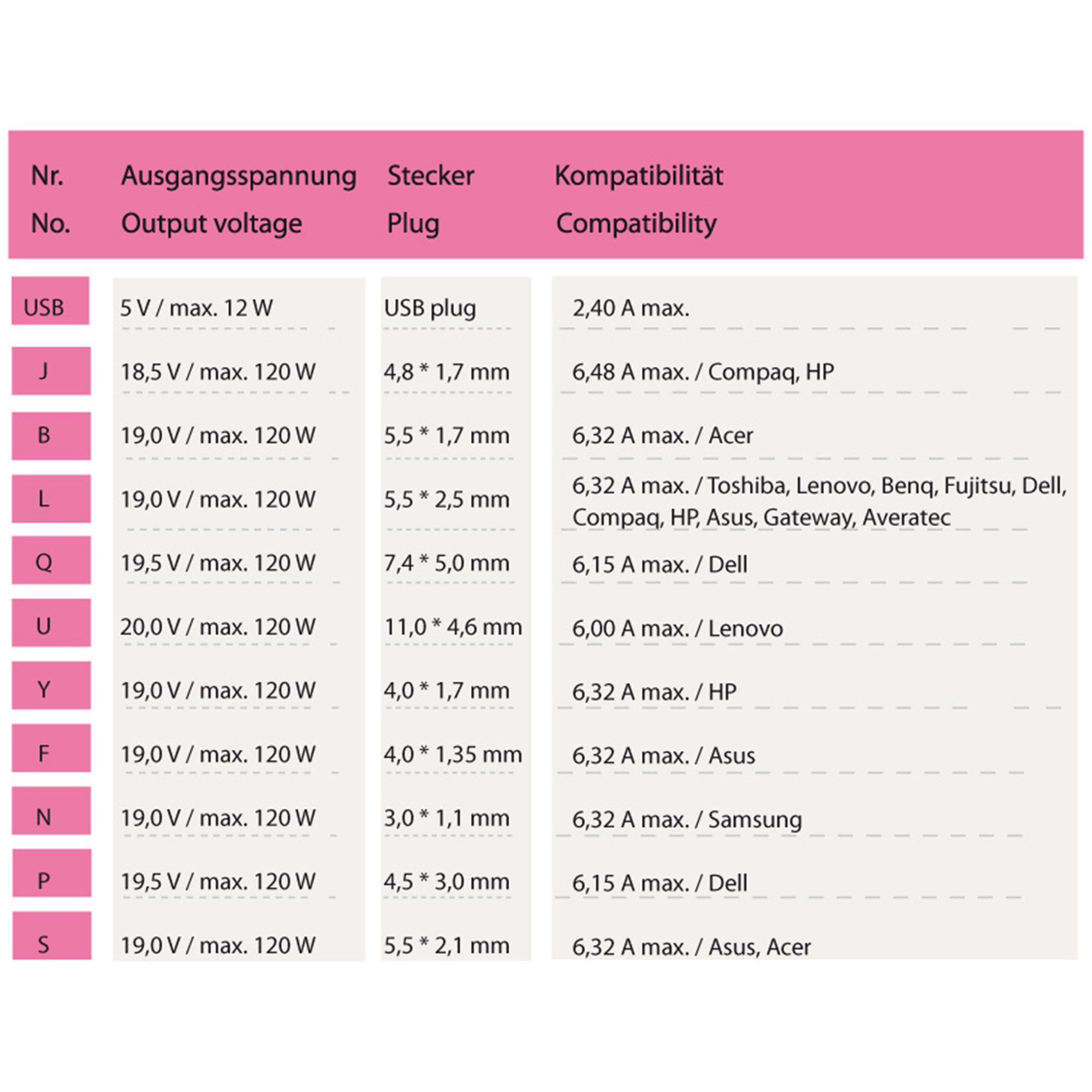 Ideal als Ersatznetzteil, Zweitladegerät oder universelle Stromversorgung für verschiedene Notebook-Modelle.