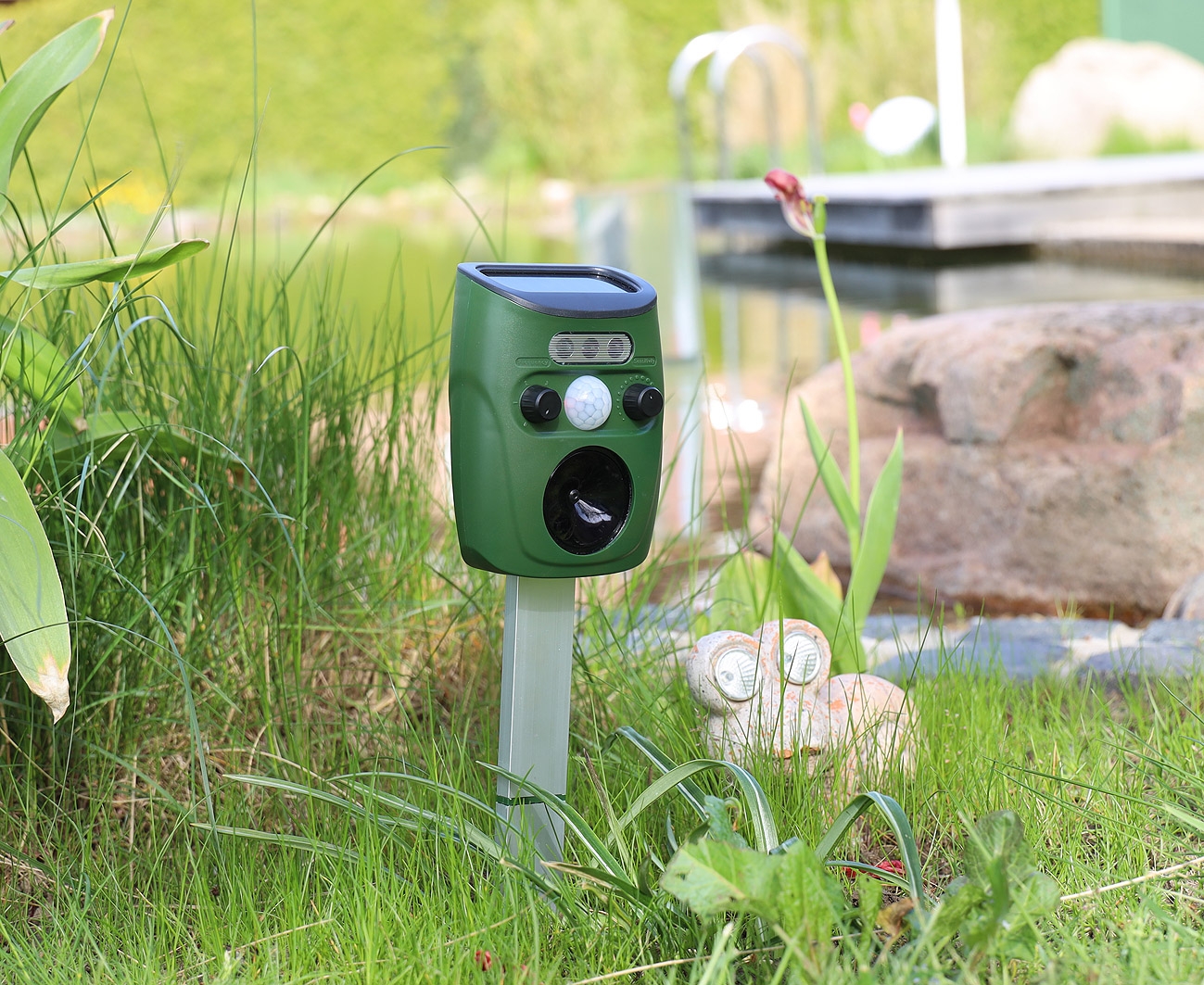 Das Gerät hilft dir, Tiere aus deinem Garten fernzuhalten.