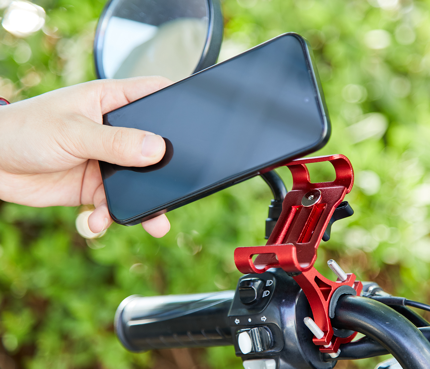 Die kompakte Handyhalterung im stylischen Rot findet auch auf kleinen Lenkern Platz. Ideal für Fahrräder, Roller oder auch Motorräder geeignet. Der Handyhalter wird einfach mit einer Schraubklemme am Lenker montiert. Die minimalistische Halterung verschwendet keinen Platz am Lenker.