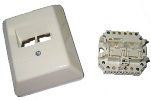 UAE-Dose 2x RJ45 Buchse,Aufputz, 2 x Schraubanschluss, 4 polig belegt für ISDN (Pin 3,4,5,6), jede Buchse ist getrennt anschließbar.