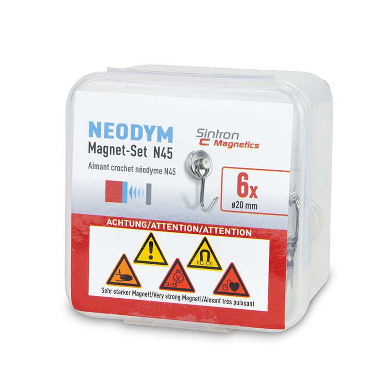 Magnetics N45 Neodymmagnet-Set 6 Haken Magnet-Durchmesser 20 mm