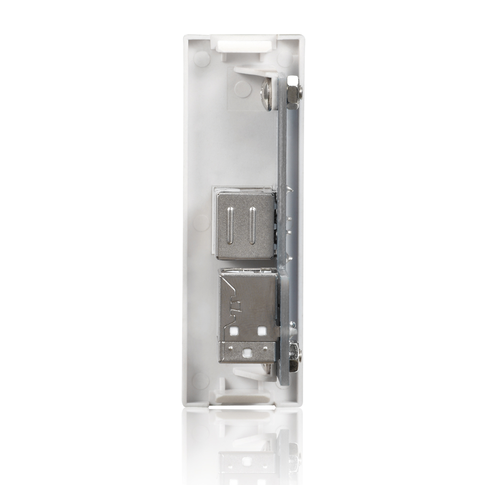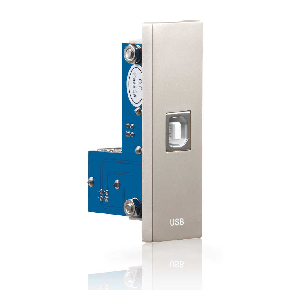 Diese Wallplate beinhaltet eine HighSpeed USB 2.0 B-Kupplung (max 480 MBit/s), die Rückseitig über eine USB A-Kupplung angeschlossen wird.