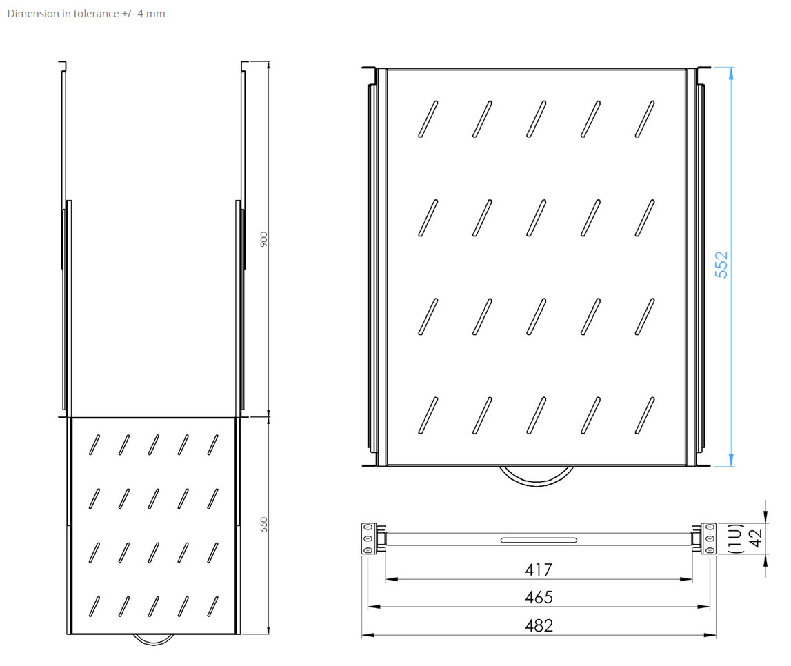 19 Zoll ausziehbarer Fachboden 1HE schwarz 550mm für Strebenabstand von 54-95cm