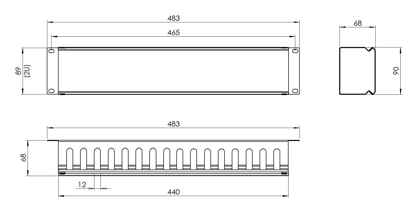 19 Zoll Rangierpanel Kabelführungspanel grau 2HE