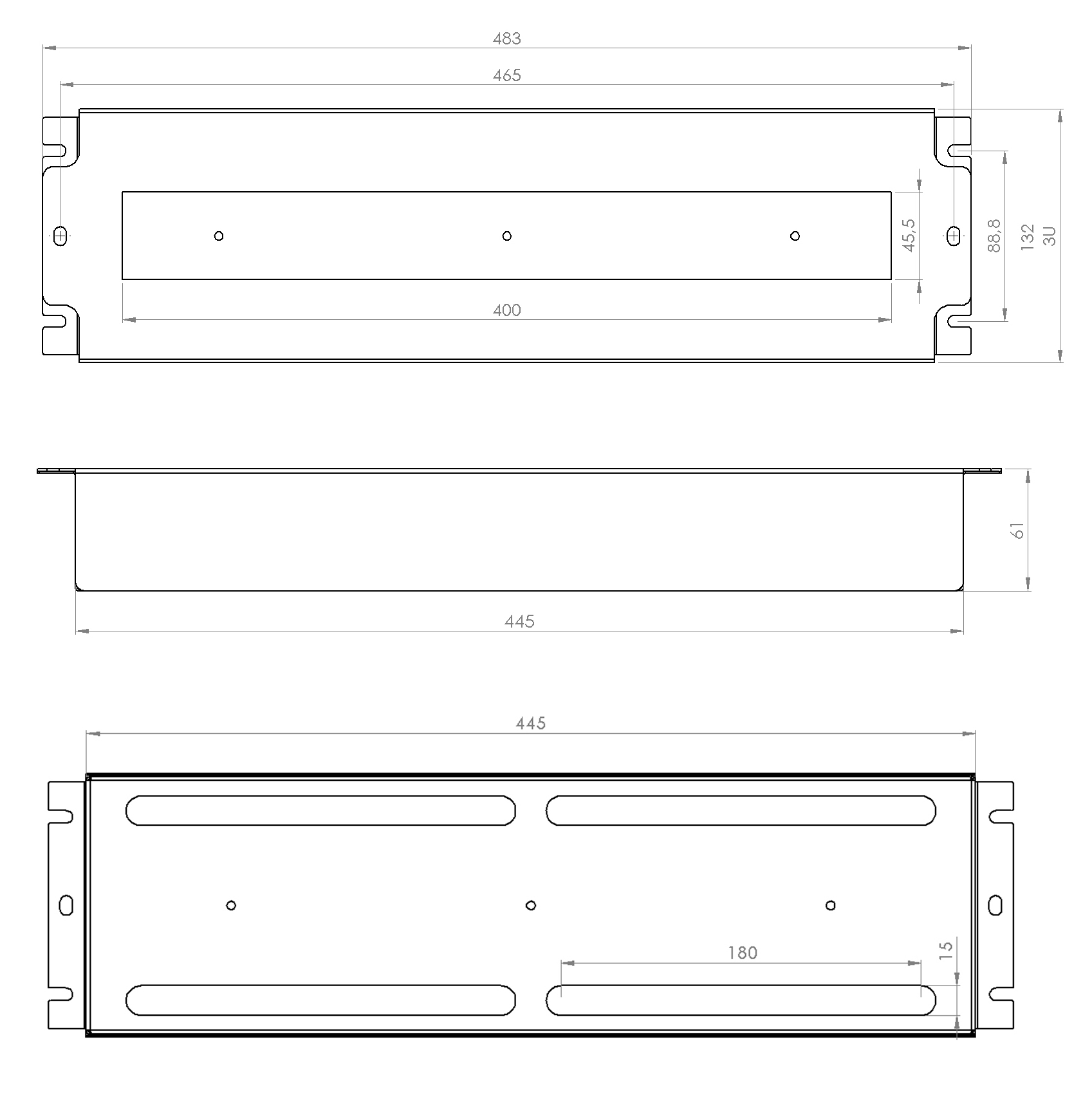 19 Zoll Schutzschalterleiste schwarz 3HE mit Hutschiene für 22 Plätze