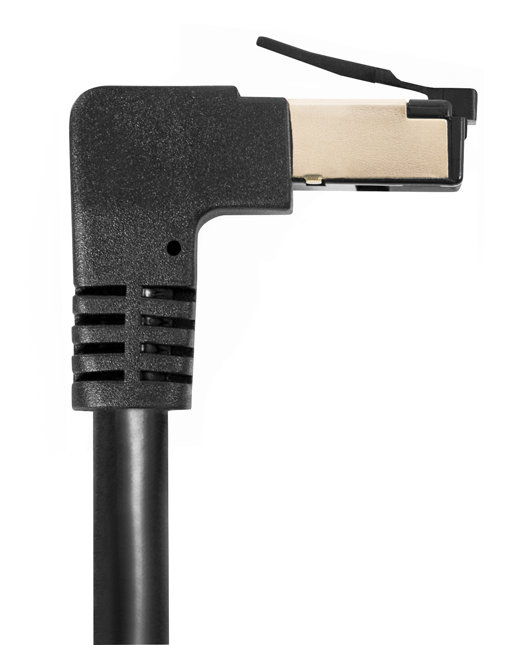 Ein gerader Rj45 Stecker, ein nach unten gewinkelter Rj45 Stecker