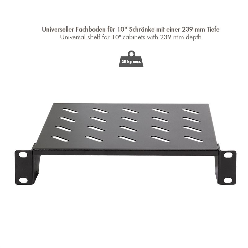 Fachboden für 10"-Rackeinbau, 200 mm, 1HE, schwarz