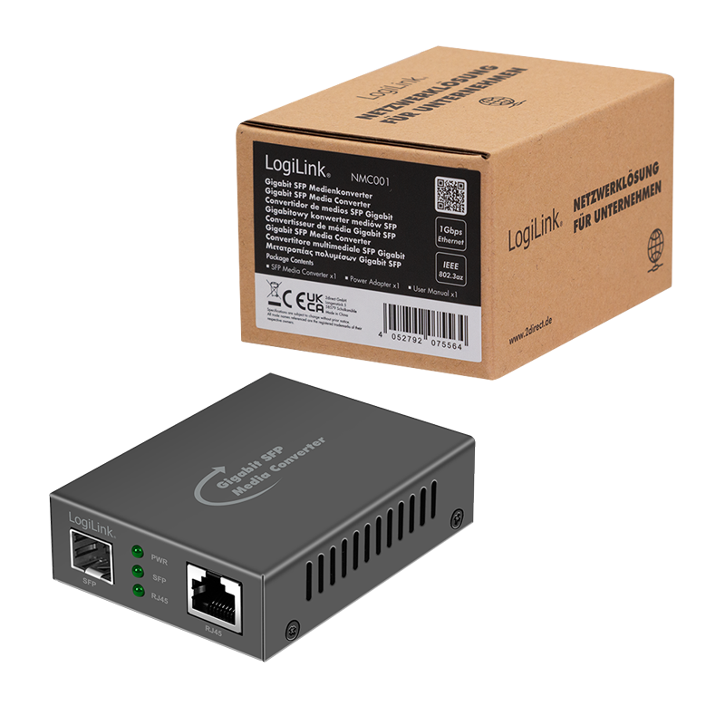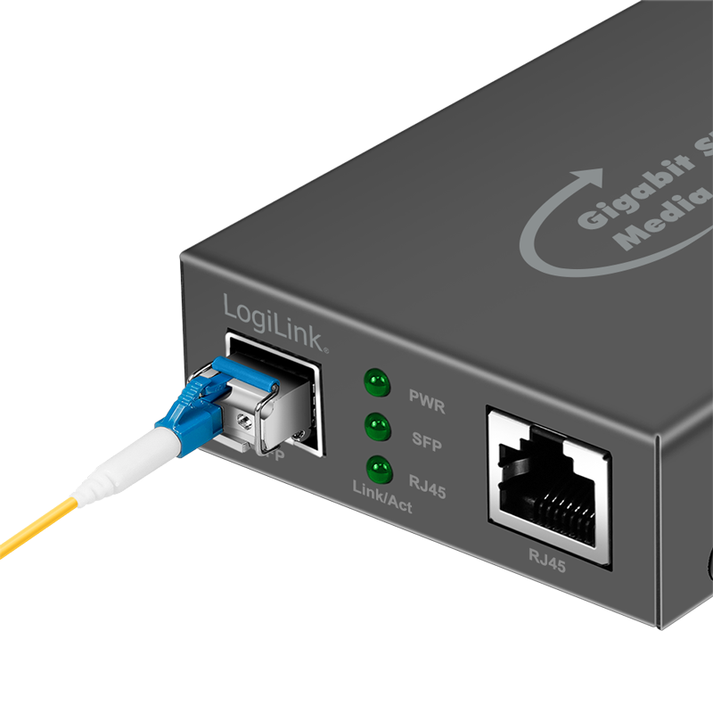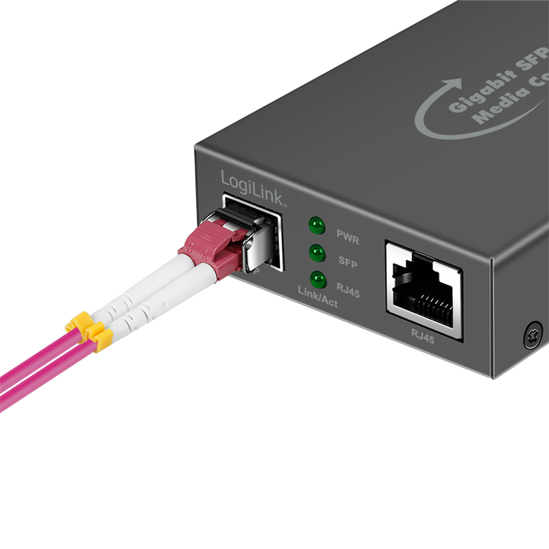Der Gigabit Medienkonverter RJ45 auf SFP ist die ideale Lösung, um Kupfer-Ethernet-Verbindungen (RJ45) in Glasfaser-Netzwerke (SFP-Modul) umzuwandeln.
