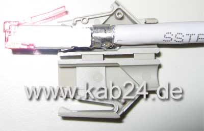 Der Aussenschirm wird dann auf ca. 5-6mm gekürzt und nach hinten umgeschlagen.