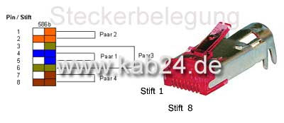 Nun folgt der eigentlich schwerste Teil, - die einzelnen Adern in die entsprechende Position des Kammes zu bekommen. Eine Belegung der Farben sehen Sie hier: