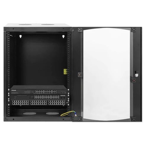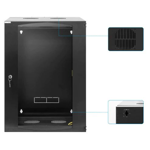 Kab24® Netzwerkschrank mit Schwenkrahmen 19 Zoll 15 HE schwarz Wandgehäuse H:72,5 x B:54 x T:45cm