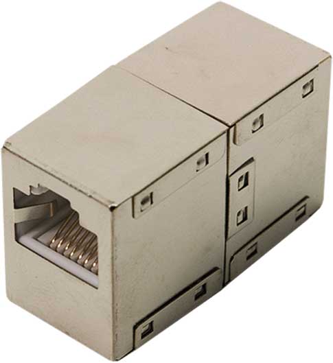 Modularverbinder, Doppelkupplung, 2x (8/8) RJ45-Buchse, Belegung: 1:1, geschirmte Metallausführung auch für CAT5e