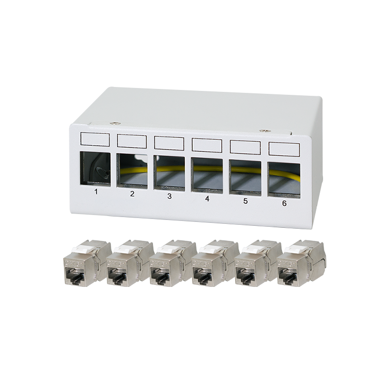 Das 6-Port Patch Panel mit Cat.6A Keystone Modulen ist die ideale Lösung für professionelle Netzwerkverkabelungen.