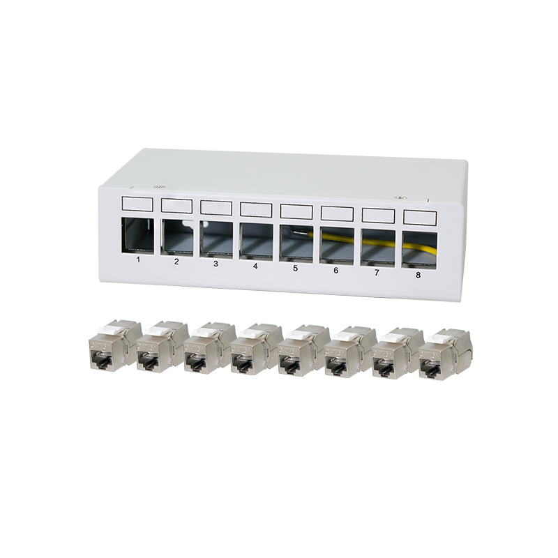 Das 8-Port Patch Panel mit Cat.6A Keystone Modulen bietet eine robuste und flexible Lösung für strukturierte Netzwerkverkabelungen.