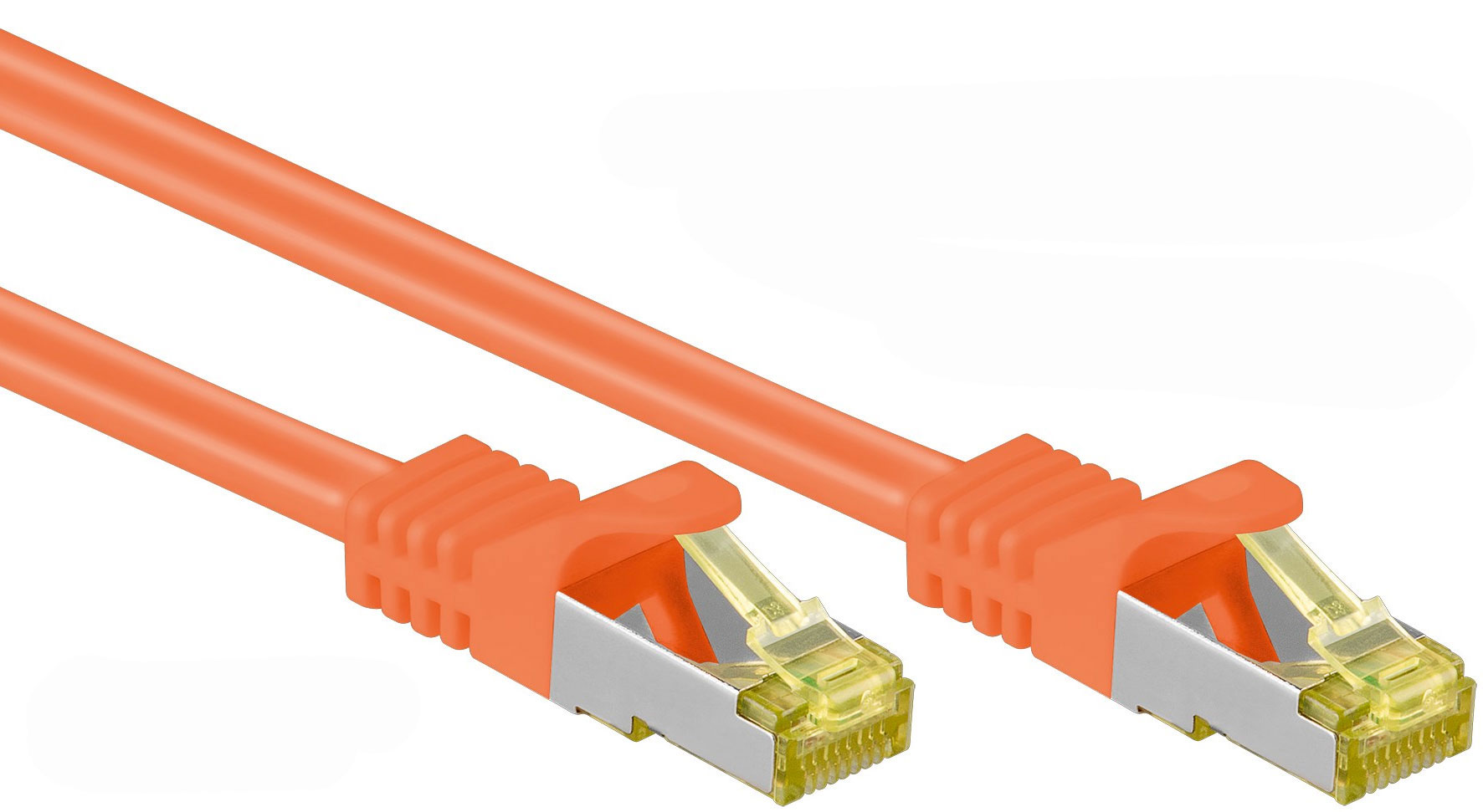 CAT 7 Kabel, orange Patchkabel, RJ45 CAT 6A Stecker, S/FTP PiMF, halogenfrei, LSZH, 600 MHz, 10 Gbit/s, reines Kupfer, Ethernet, PoE, Netzwerkstecker, Gaming, Heimnetzwerk.