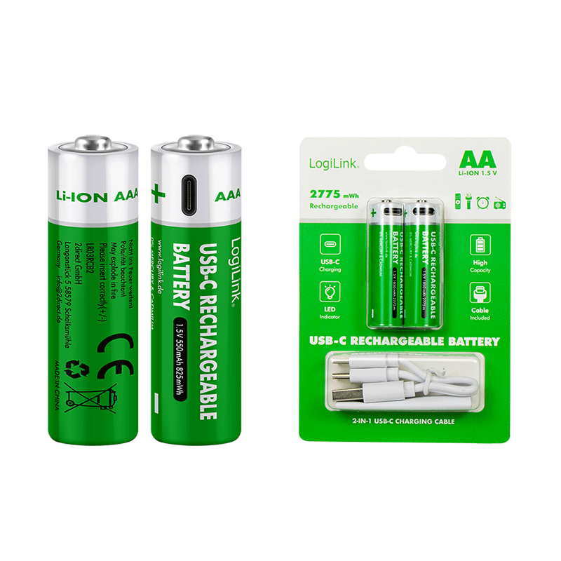 Die AA 1.5 V Li-Ion-Akkus von LogiLink sind die leistungsstarke und nachhaltige Alternative zu Einwegbatterien. Mit einer Nennspannung von 1,5 V und einer Kapazität von 1850 mAh (2775 mWh) liefern sie konstante Energie für viele Geräte – von Fernbedienungen, Digitalkameras und Controllern bis zu Spielzeug, Rasierapparaten und Mikrofonen.