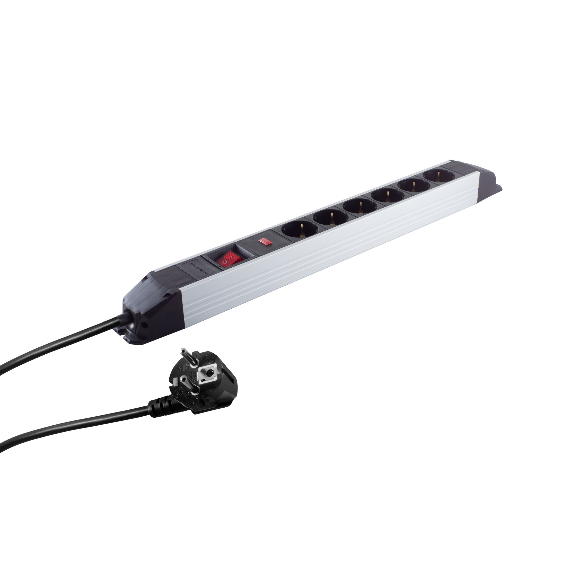 Alu Steckdosenleiste 6-fach mit Überspannungsschutz