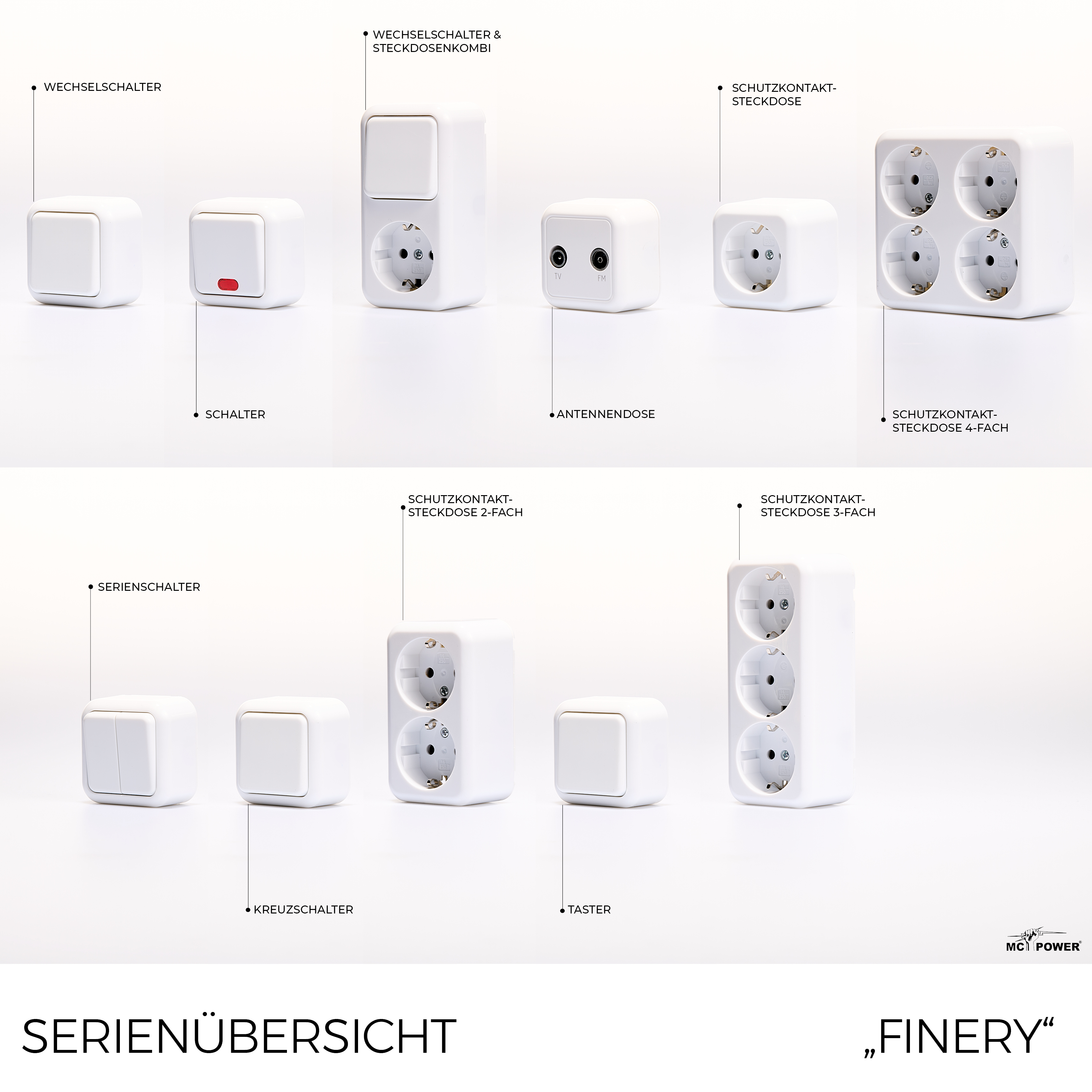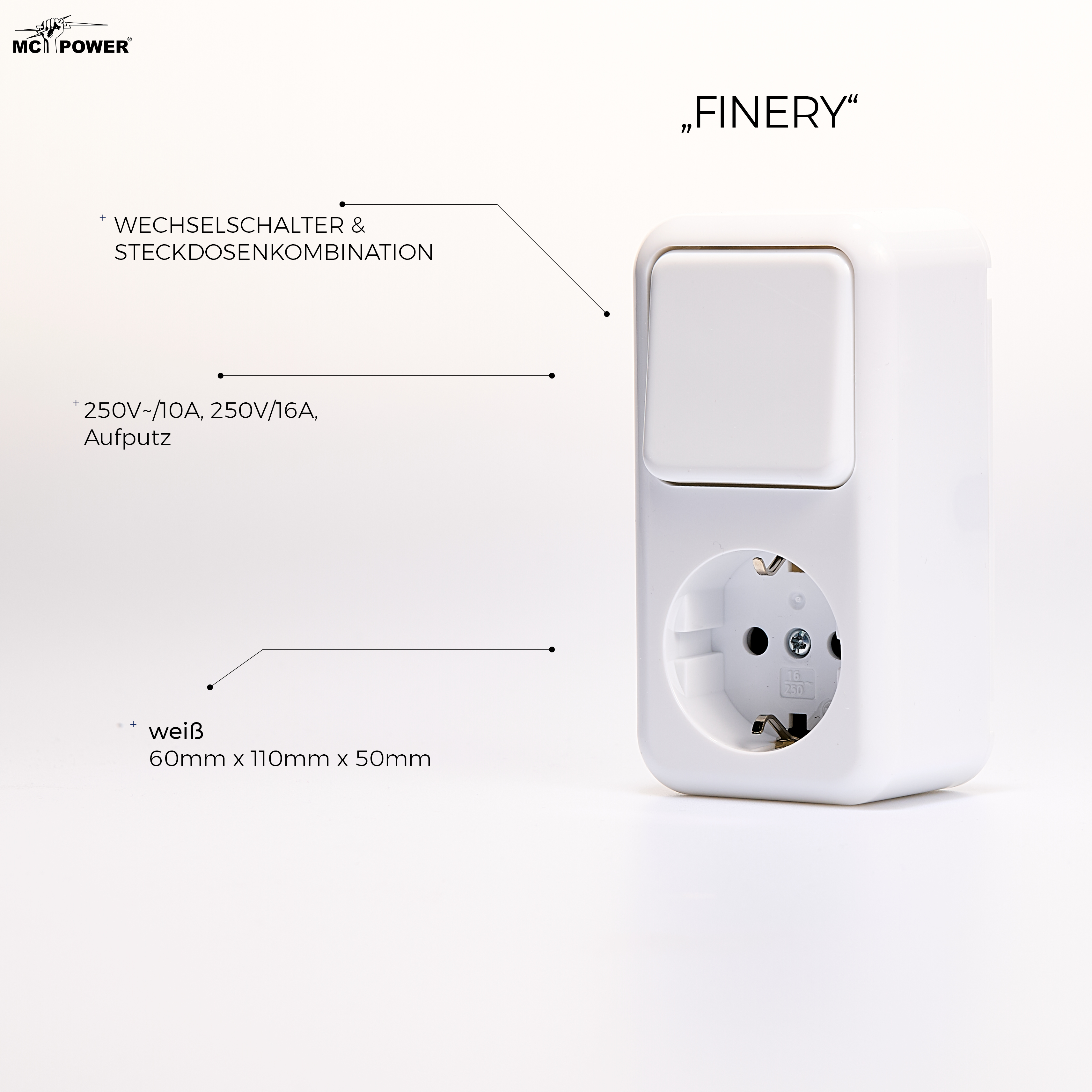 Aufputz-Wechselschalter-Steckdosenkombination