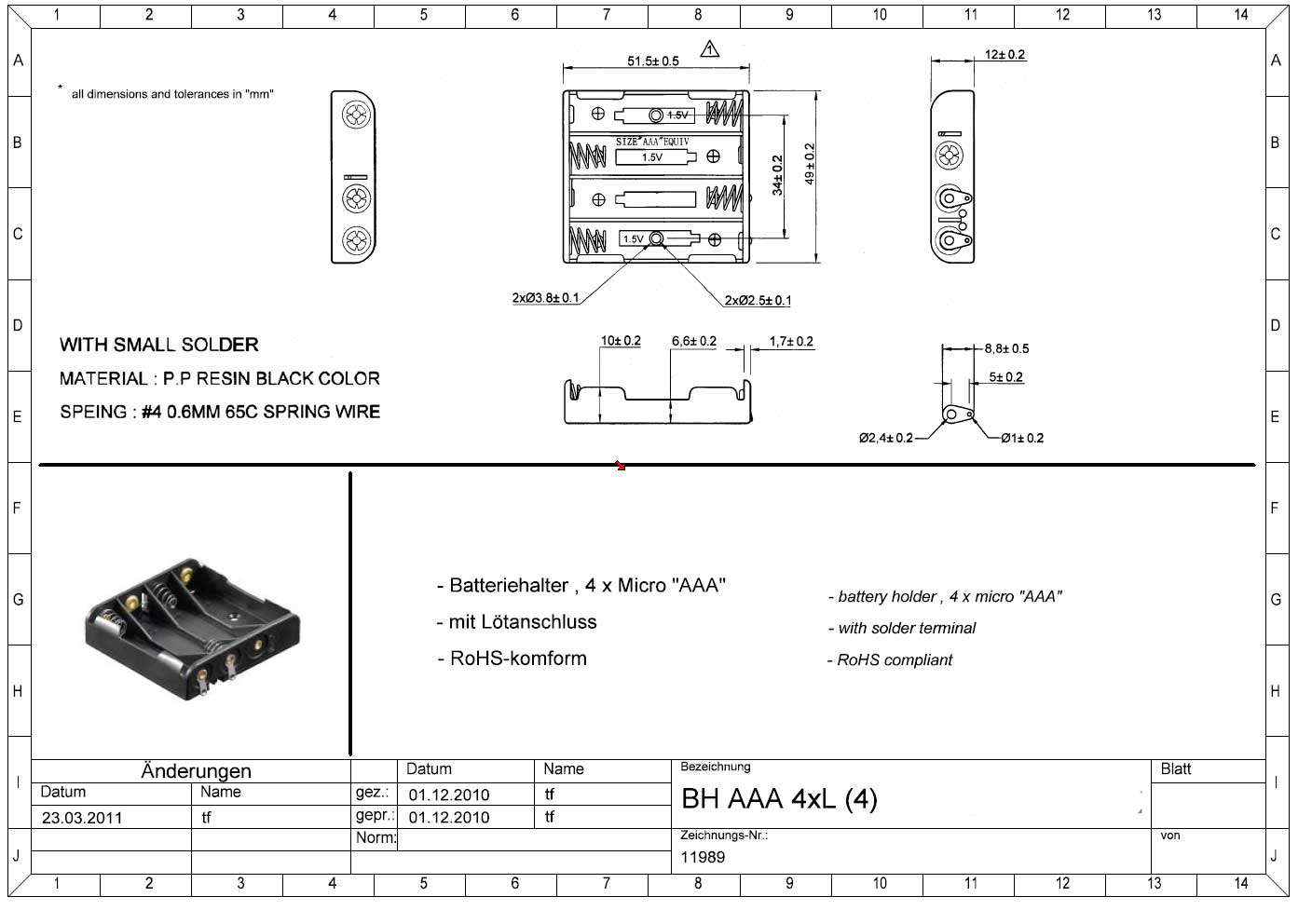 Batteriehalter passend für Zellen der Bauform: 4x Mirco (AAA)