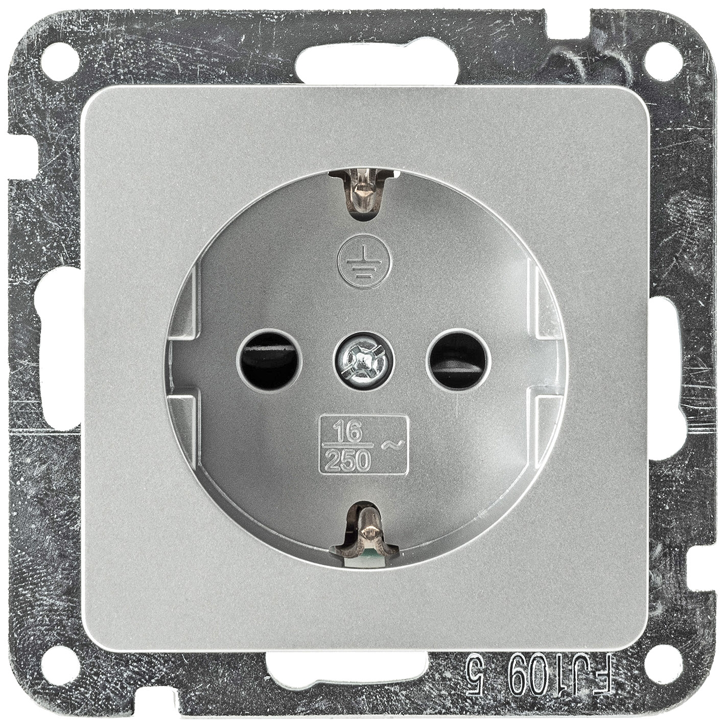 DELPHI Unterputz Steckdose ohne Rahmen mit Steckanschluss silber