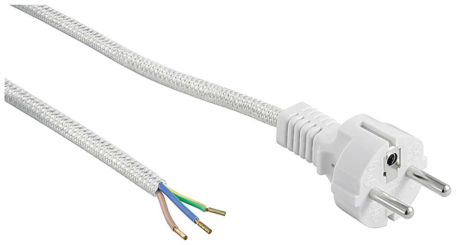 Kab24® Stromkabel für Bügeleisen / Waffeleisen Textilmantel 3m auf offene Enden