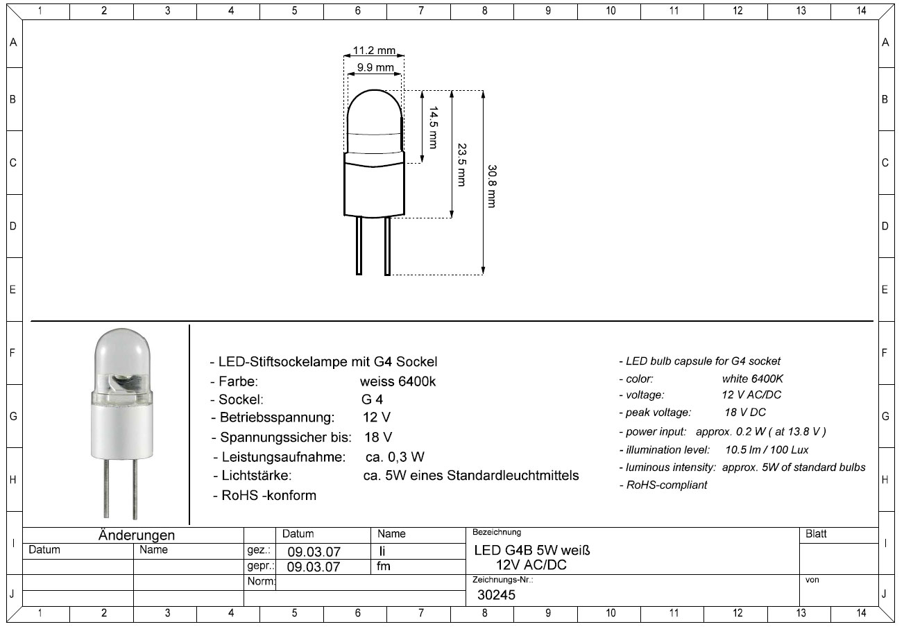 LED G4B 5W weiss 12V AC/DC