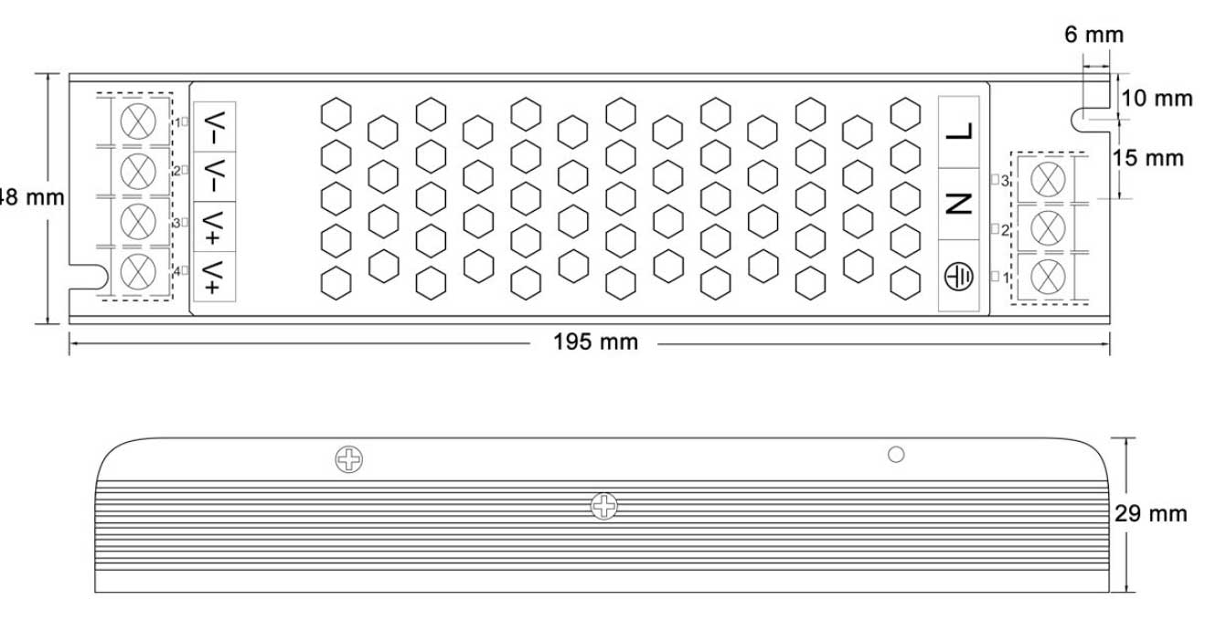 Abmessungen:L x B x H [mm] 195 x 48 x 29