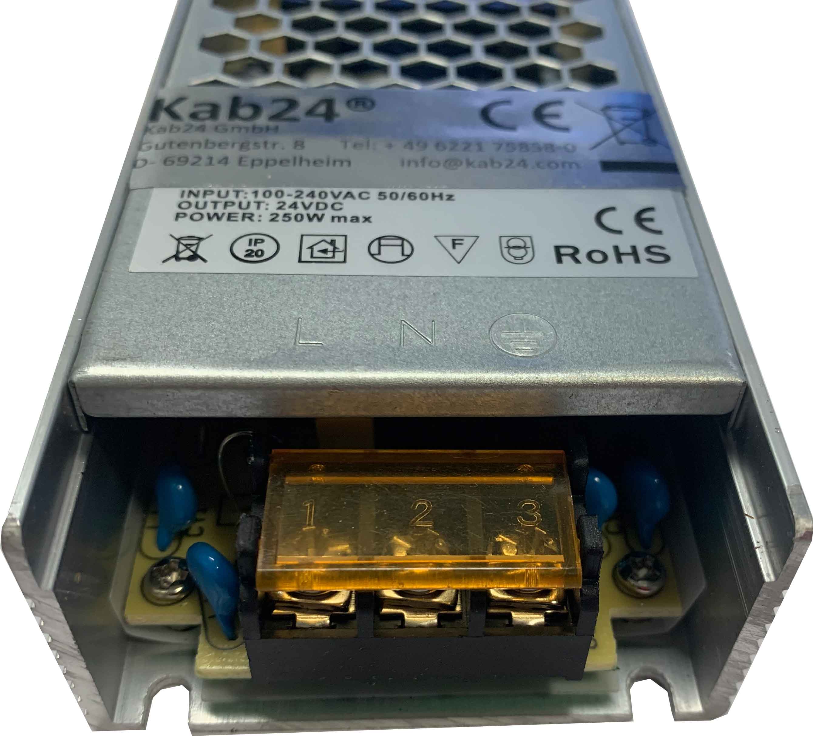max. Belastung: 250 Watt (10,42A) bei 24V