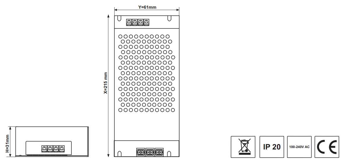 Dieses Netzteil eignet sich Idealerweise für den Anschluss von 24V LED Stripes / LED Lichtbändern. Beachten Sie, dass ein Netzteil ca. 20% größer dimensionieren, als die tatsächliche Leistungsaufnahme der angeschlossenen Verbraucher. Bei der Montage ist darauf zu achten, dass das Netzteil genügend Abstand zu anderen Gegenständen haben muss, somit ist eine sichere Wärmeableitung gewährleistet.