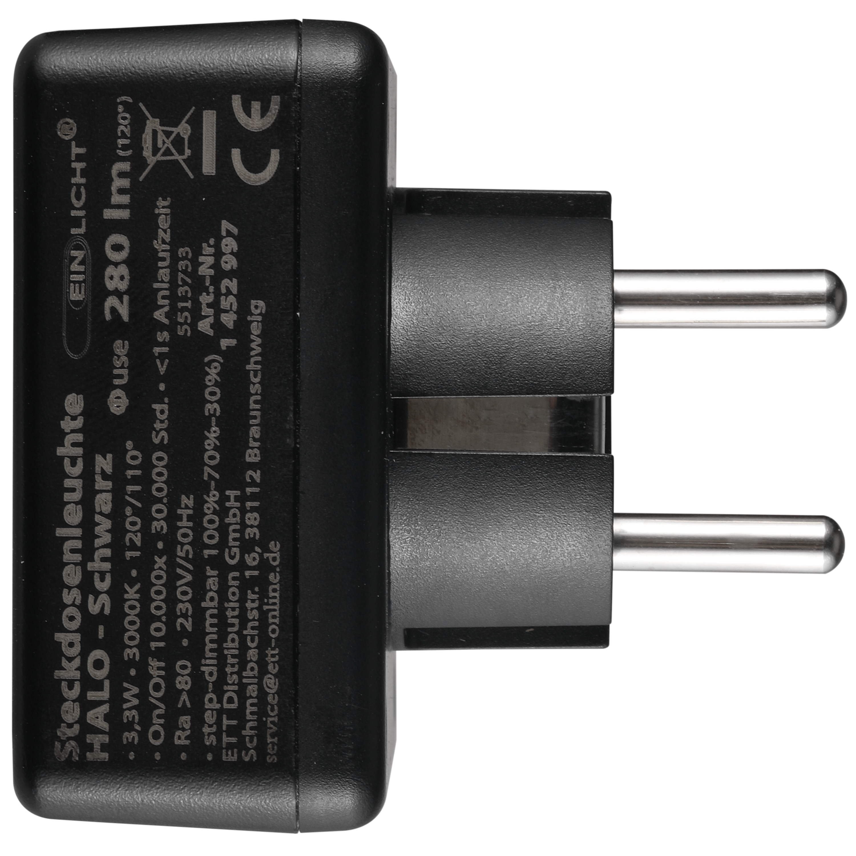 Die LED-Steckdosenleuchte EINLICHT „Halo“ 3,3 W ist eine kompakte, flexibel ausrichtbare Leuchte, die direkt in eine Steckdose gesteckt wird. Sie eignet sich ideal als Lese- oder Nachtlicht und benötigt keine zusätzliche Installation.