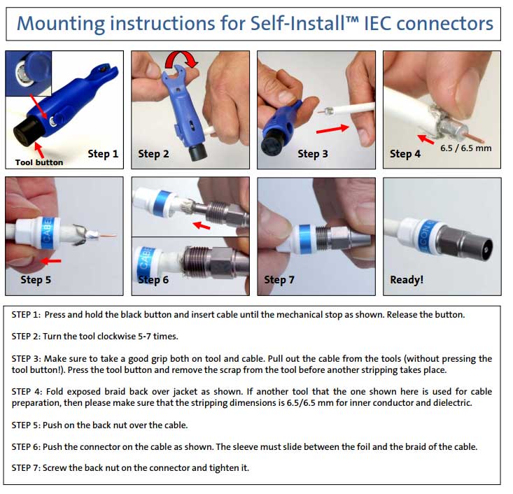 Den passenden Stecker, - ein passendes Abisolierwerkzeug und ein Koaxialkabel mit excellenten Parametern finden Sie im Reiter "Zubehör".