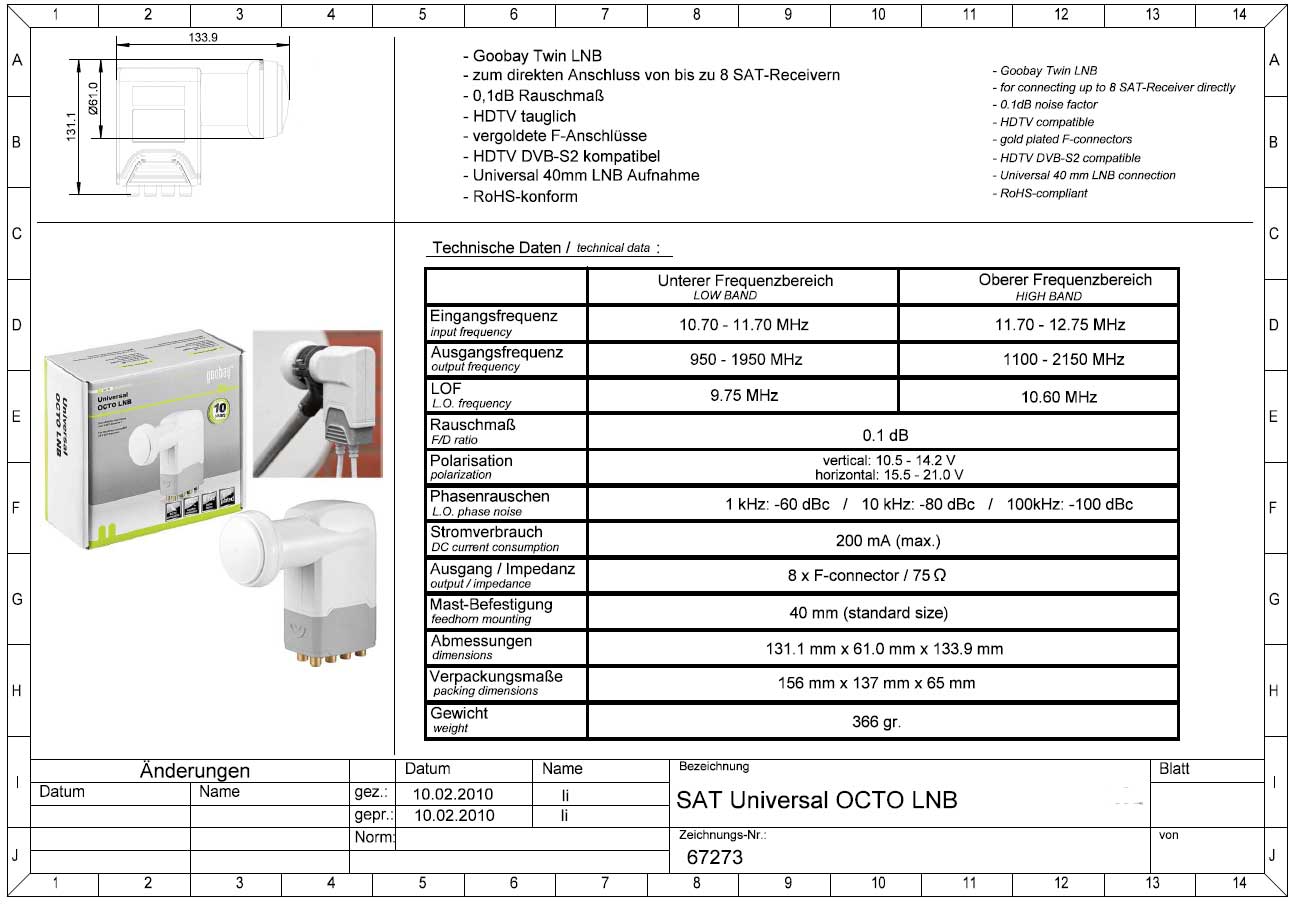 Empfangsbereich Low Band: 10,7 ~ 11,7 GHz