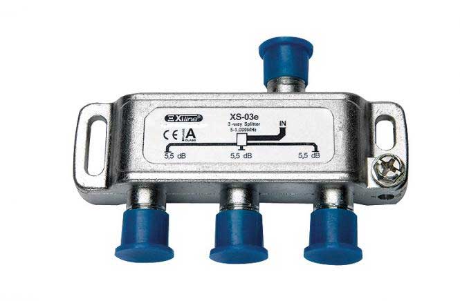 Der Verteiler verteilt das eingespeiste Antennensignal parallel an alle 3 Ausgänge.