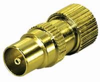 Koaxstecker 9,5 mm, für Kabel mit max. Ø 7,0 mm Außendurchmesser, Vollmetall, vergoldet, schraubbar.