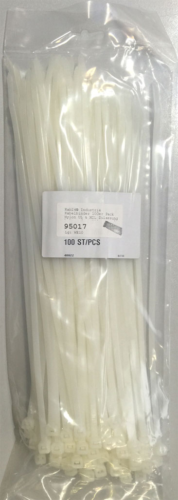 Kab24® Industrie Kabelbinder 100er Pack Polyamid UL Zulassung halogenfrei 282mm x 4,8mm naturfarben