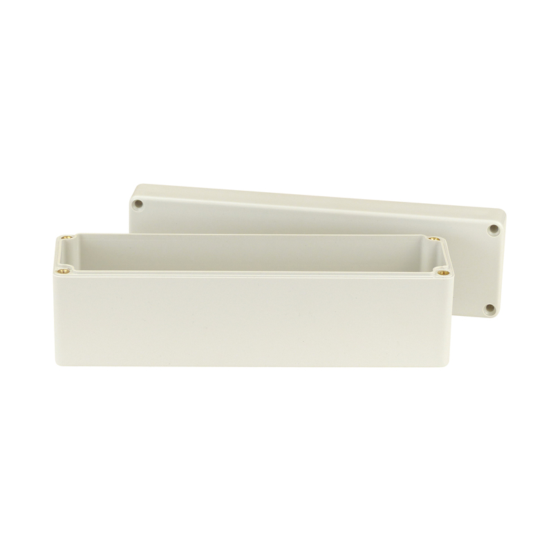 Hochwertiges, staubdichtes und strahlwassergeschütztes Gehäuse aus ABS, Schutzklasse IP 65. Inkl. Dichtungsgummi und Metallschrauben. Mit Befestigungsmöglickeit für Einbauten. Aussenmaße ca. 160 x 45 x 55 mm. Farbe lichtgrau.