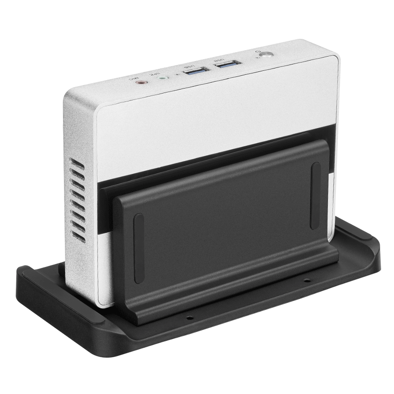 Die multifunktionale Halterung ermöglicht die sichere Befestigung von Mini-PCs, Thin Clients oder kleinen elektronischen Geräten.